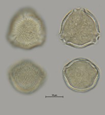 The pollen that gives honey its name, which comes from lime trees(Tilia sp.), is slightly larger at 21-35µm. The surface is reticulated and the three characteristic germination sites are formed as short pore folds (see illustration).