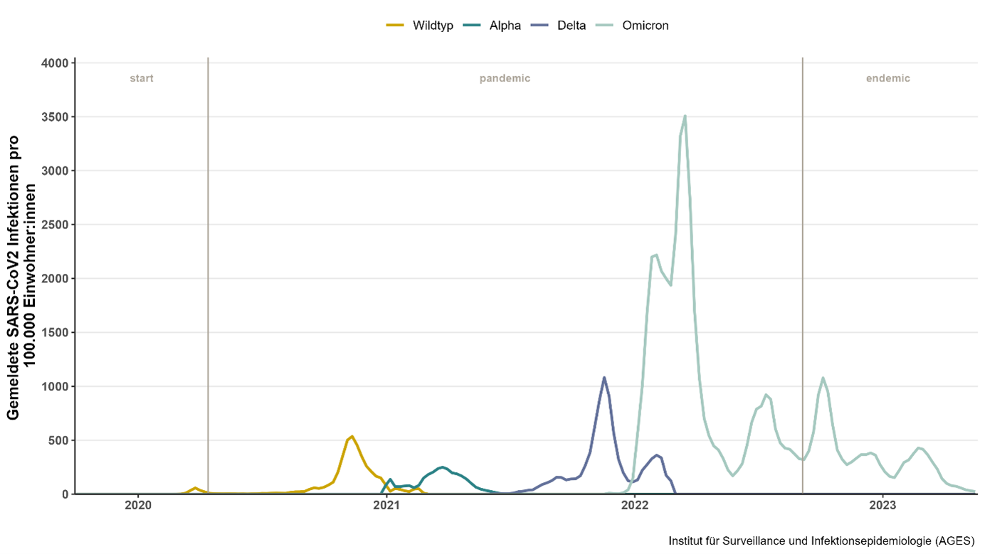 In special epidemiological situations - such as the COVID-19 pandemic - phase-based indicators can also be used. These make it possible to map changes in viral load, virus variants, behaviour, medical knowledge and regulatory measures over time. The combination of seasonal and phase-based modelling enables a realistic depiction of complex dynamics.