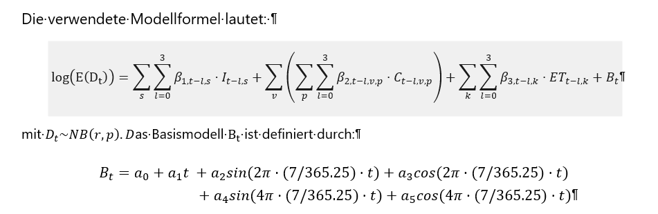 Auch die Annahme zeitlich stabiler saisonaler Zusammenhänge zwischen Erregerindikatoren und Mortalität ist eine Vereinfachung. Veränderungen im Gesundheitsverhalten, medizinischen Versorgungskapazitäten oder Impfstatus können die Letalität beeinflussen und sind im Modell nur indirekt abbildbar.