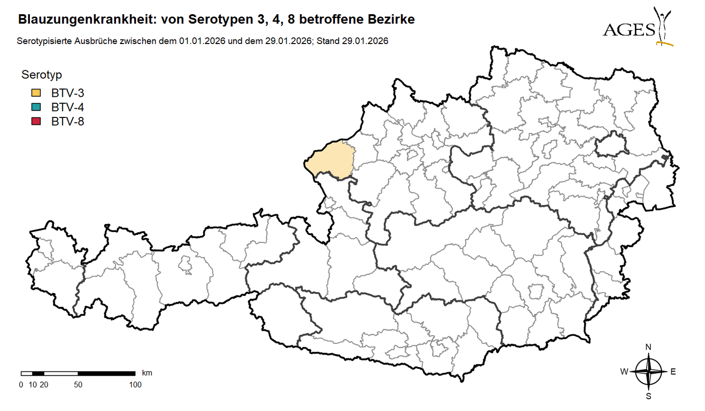 In Österreich ist im September 2024 erstmalig seit 2016 die Blauzungenkrankheit wieder aufgetreten. Nachgewiesen wurden Serotyp 3 und Serotyp 4 im September 2024 und BTV-8 im August 2025. Für ganz Österreich ist der Status „frei von Blauzungenkrankheit“ ausgesetzt. Österreich hatte seit dem 15.04.2021 den Status "seuchenfrei" gemäß der Durchführungsverordnung (EU) 2021/620.