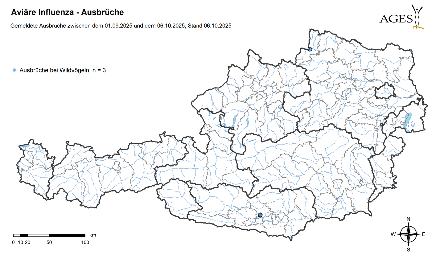 Am 26. September 2025 erfolgten Nachweise der hochpathogenen aviären Influenza A(H5N1) bei Schwänen im Bezirk Feldkirchen in Kärnten. Ein weiterer Ausbruch wurde am 1. Oktober bei einer Ente im Bezirk Gmünd in Niederösterreich bestätigt.