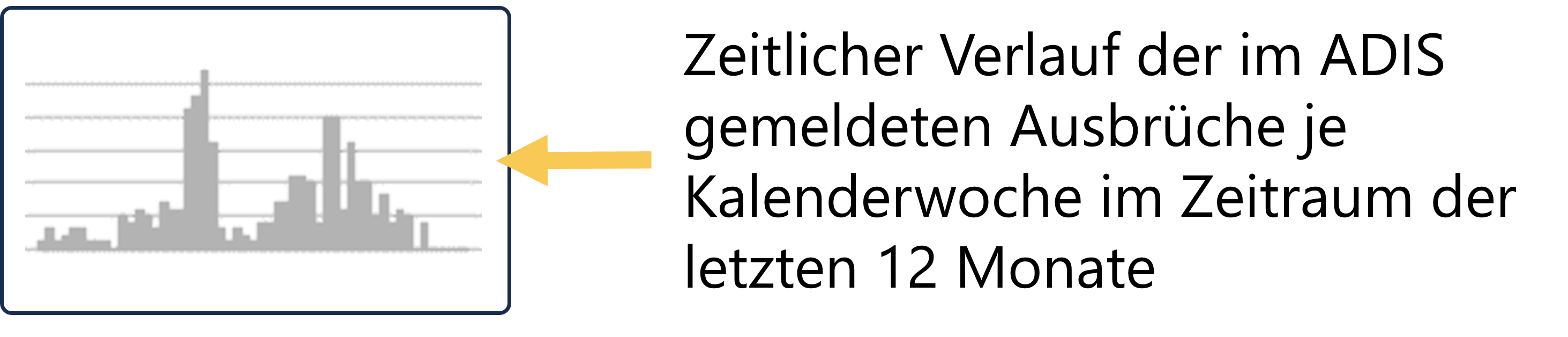 Die Datenabfrage erfolgt im ADIS zum angegebenen Stichtag. Nachmeldungen von Ausbrüchen nach dem Stichtag der Abfrage werden nicht dargestellt. Daraus können sich Unterschiede in den Ausbruchszahlen zu früheren Ausgaben des Tierseuchenradars ergeben.